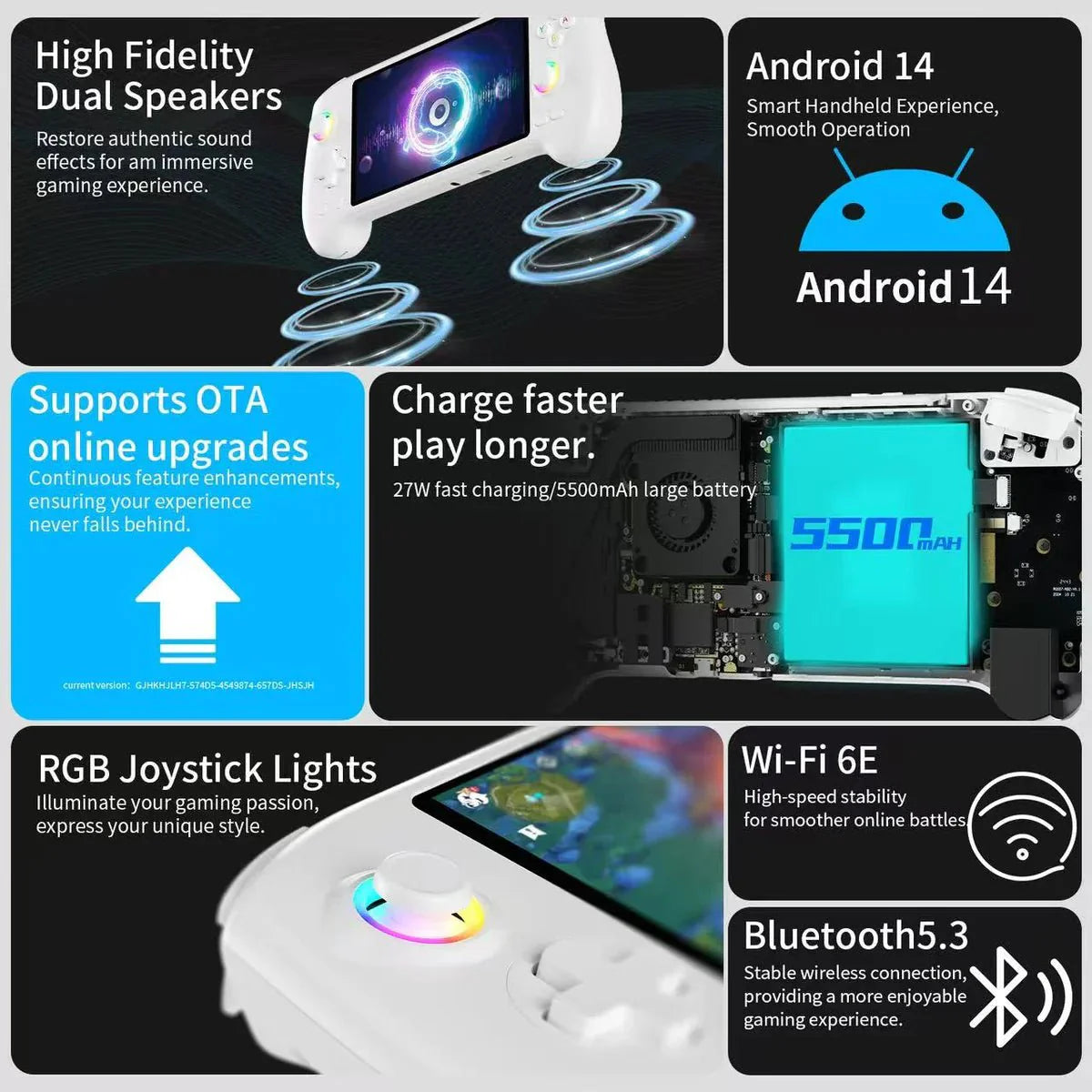 The RG557 features high-resolution, anti-magnetic interference capacitive joysticks with customizable RGB lighting. Hall effect triggers and a six-axis gyroscope provide precise control, enhancing your gaming experience.
